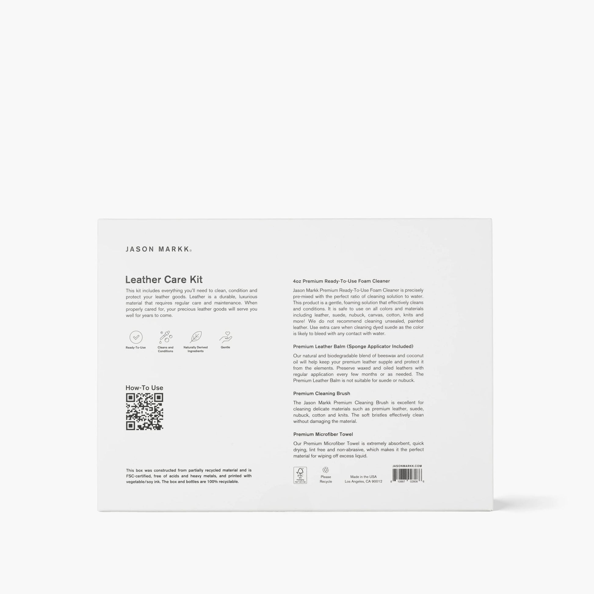 El kit de limpieza y cuidado para cuero Jason Markk incluye todo lo que necesitas para mantener tus artículos de cuero en perfecto estado. Este material duradero y lujoso requiere limpieza y acondicionamiento regulares para evitar que se seque y se agriete.